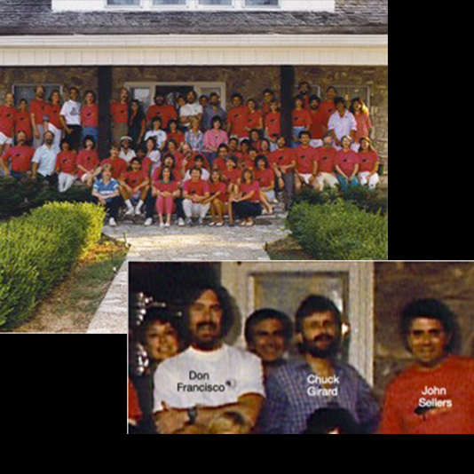 Rather than run through a list of all the names and who’s who, I thought I would do a weekly segment, featuring two or three artists at a time. I pick out songs each one recorded that impacted me in a strong way. Today’s featured artists will be Don Francisco and Chuck Girard. The photo on the left is the group shot, and the inset zooms in on the featured Artist. I include myself in the picture, because I was young and still had hair.